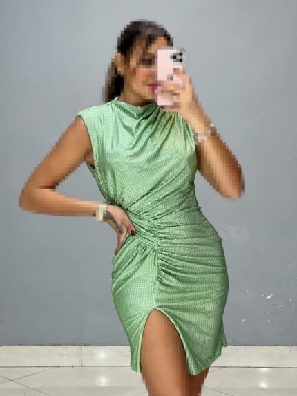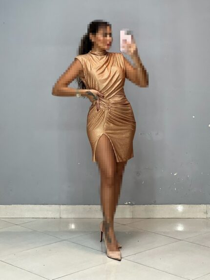 پیراهن کوتاه تاج نگینی آستین حلقه ای
