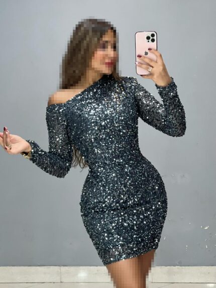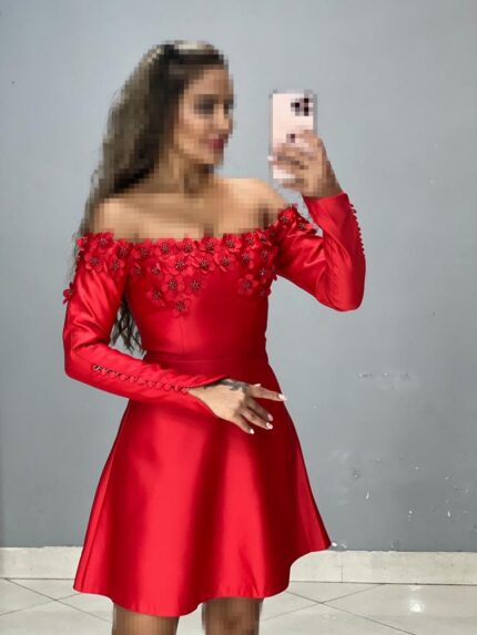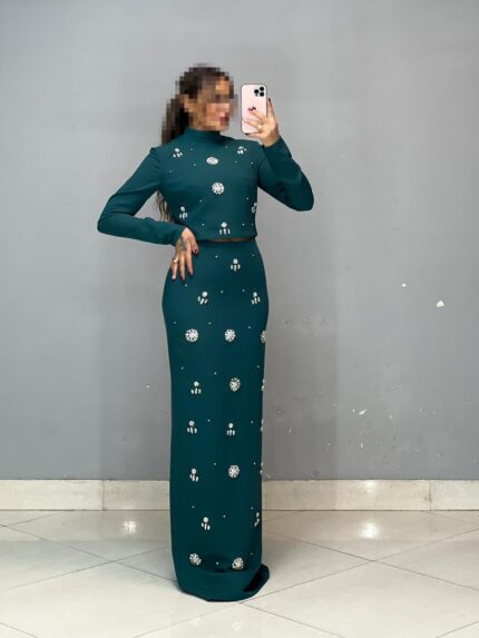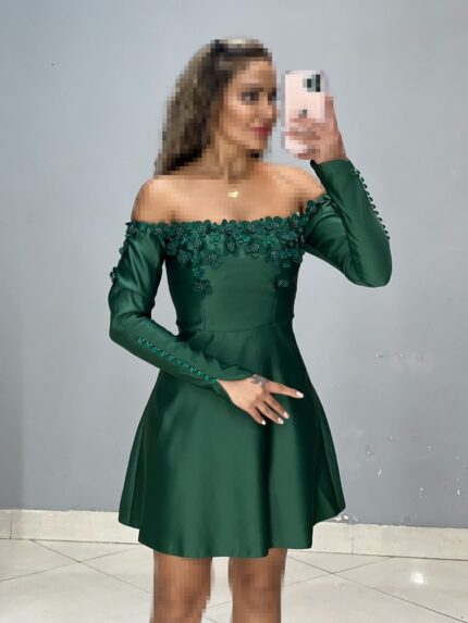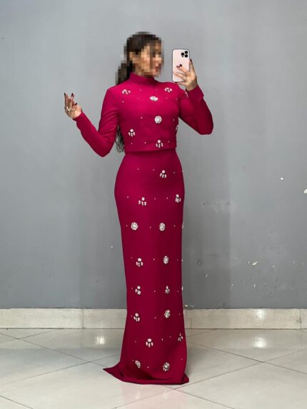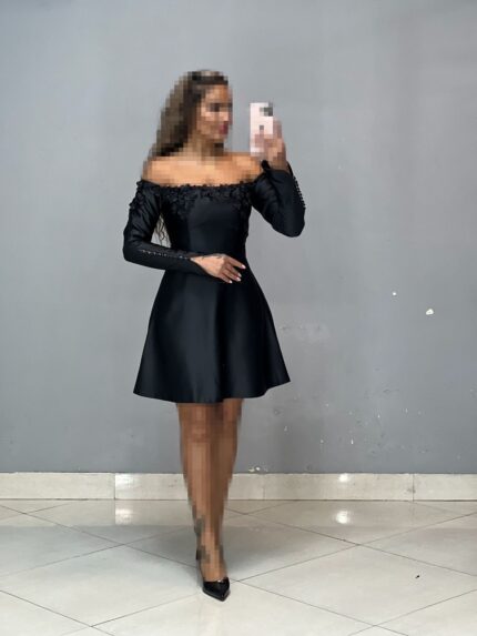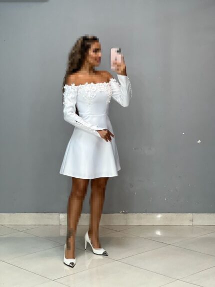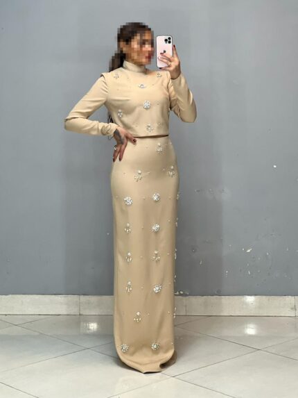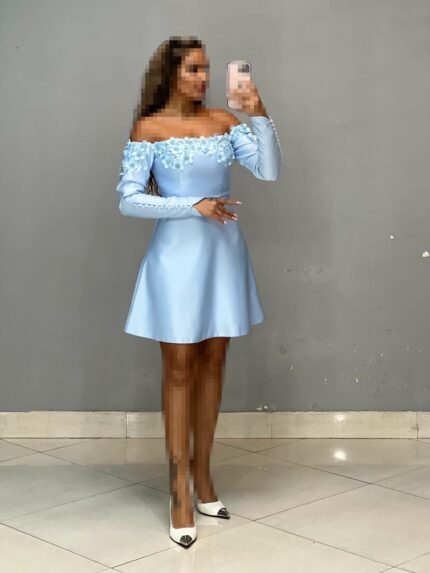 پیراهن کوتاه تاج نگینی آستین حلقه ای