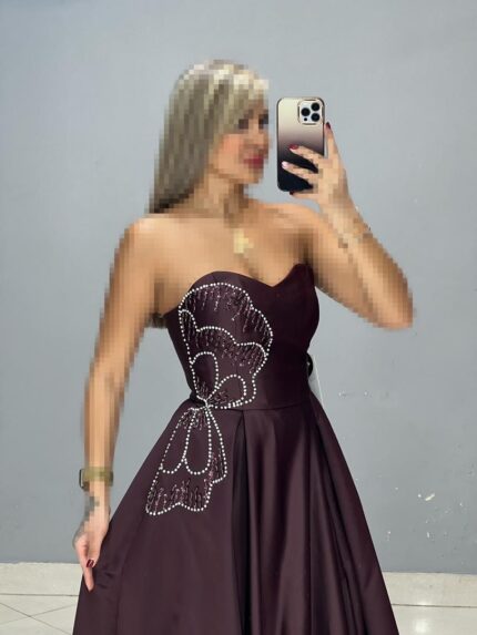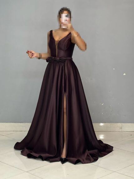 ماکسی ساتن تافته یقه دلبری پشت بندی