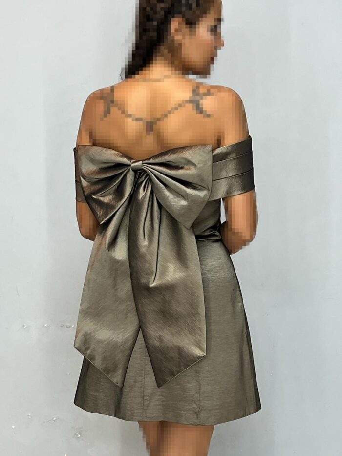 پیراهن کوتاه تاج نگینی آستین حلقه ای