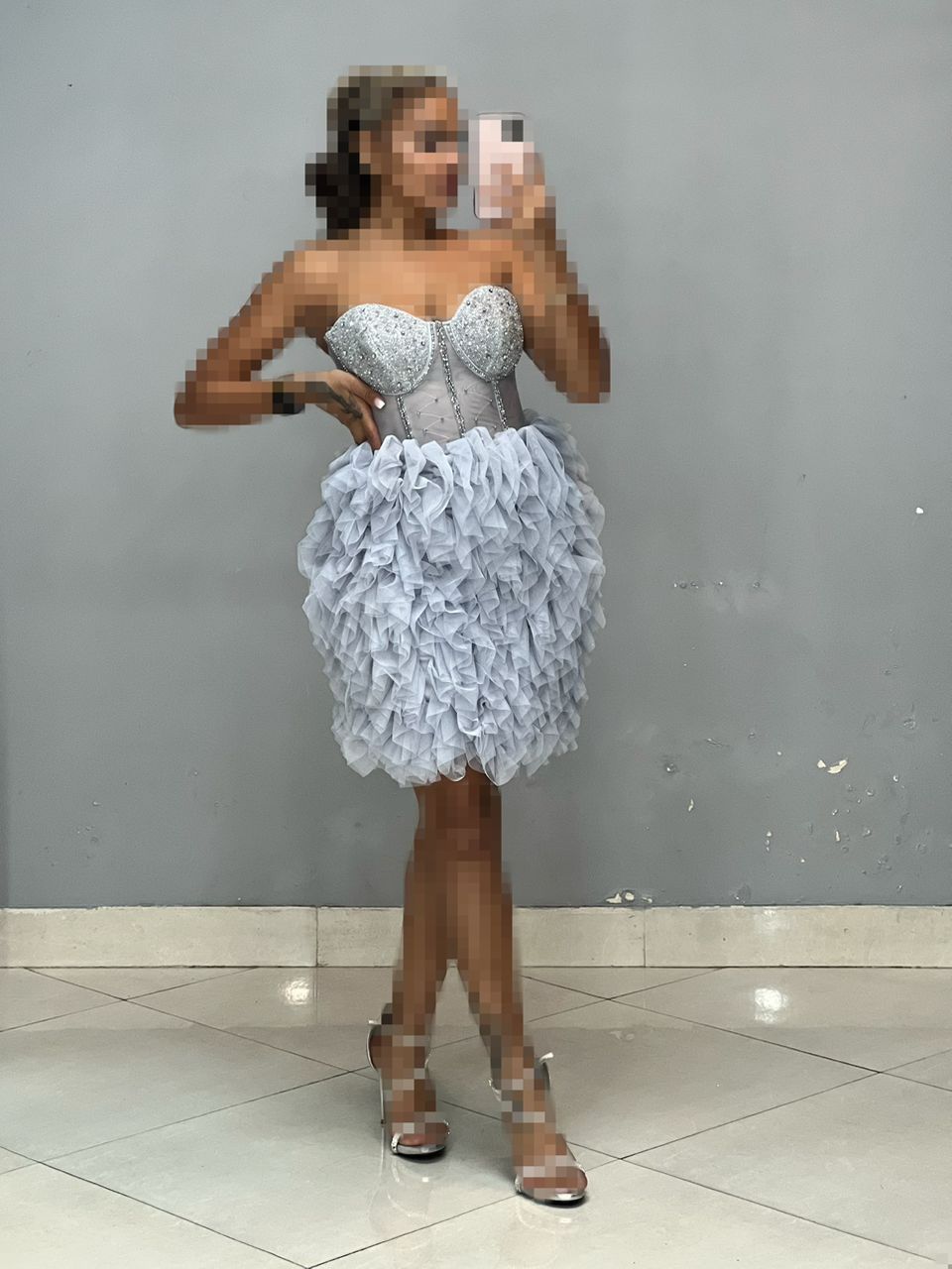 پیراهن کوتاه نوار سنگدوزی پهلو باز