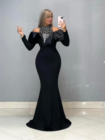 پیراهن میدی یقه قایقی سنگدوزی