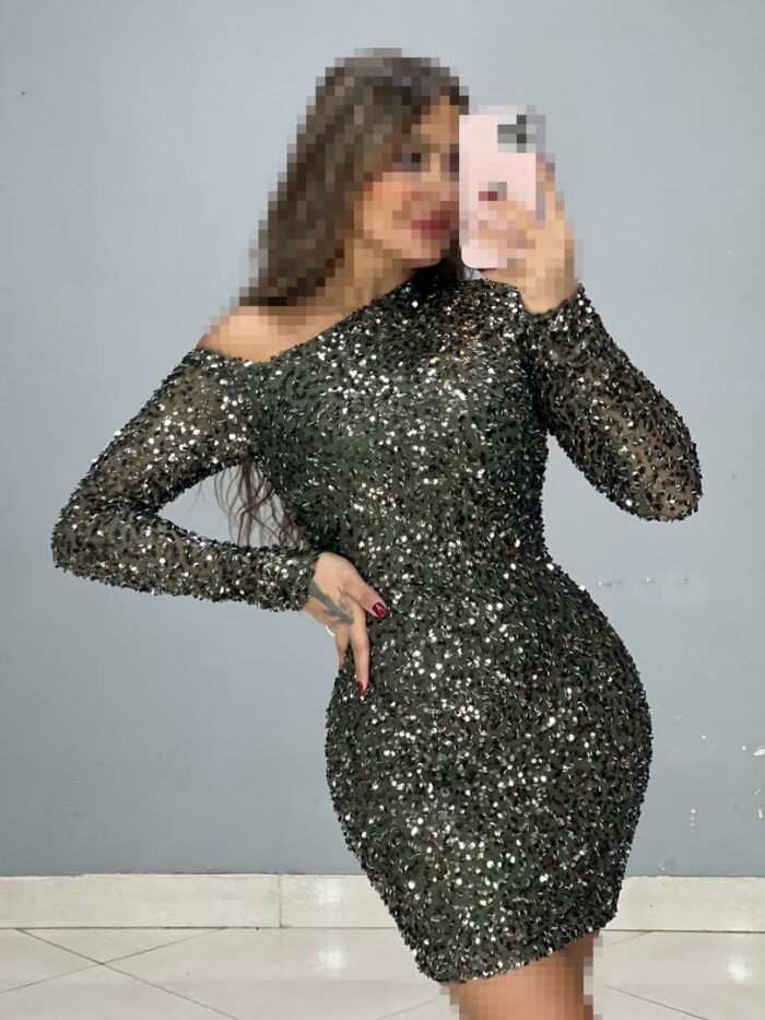 پیراهن پولک درشت سرشانه باز